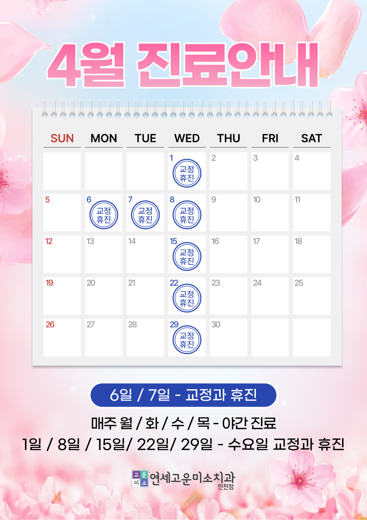 | 2026년 4월 진료일정 안내 작성일 | 2026.03.31 작성자 | 관리자 |