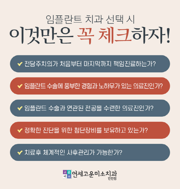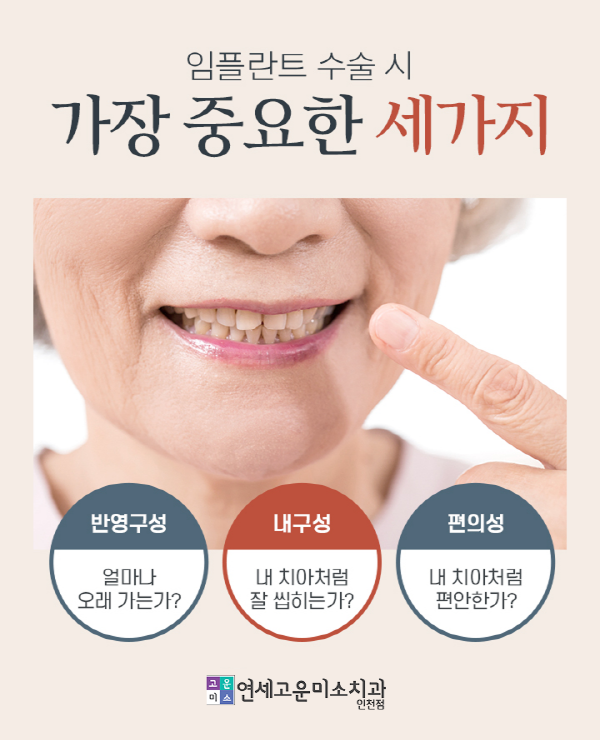 그래서 “얼마나 저렴한가”보다 “몇 년 뒤에도 임플란트가 사용될 수 있을지”를 기준으로 인천임플란트치과에 대해 고민해보시는 것이 좋습니다.