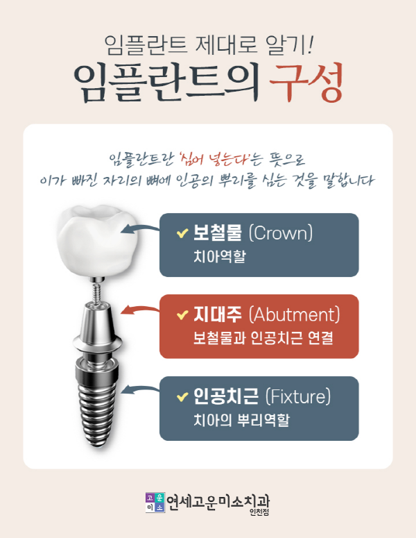 임플란트는 결국 잇몸과 치조골에 심어서 세우는 인공적인 구조물입니다.