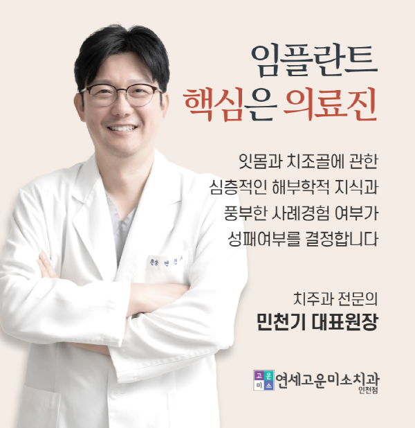 안녕하세요. 연세고운미소치과 대표원장 치주과 전문의 민천기입니다.